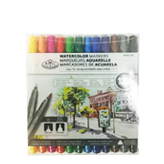 Set of 12 watercolor markers, dual-tip, great for fine details, outlines & illustrations.