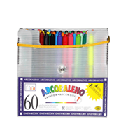 Box of 60 washable fiber pens, ventilated safety caps, water based ink, fine tip.