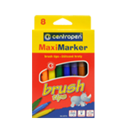 Box of 8 washable markers, 5mm brush tip, ergo grip.