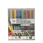 Set of 6 metallic acrylic markers, 2.0mm, reversible tip, and multi-purpose.