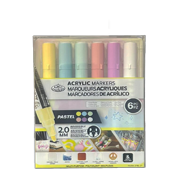 Set of 6 pastel acrylic markers, 2.0mm, reversible tip, and multi-purpose