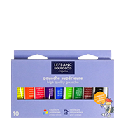 Box of 10 gouache tubes of 10 ml, student quality.