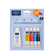 Blister of 4x10ml tubes of gouache, 1 white tube of 20ml and 1 brush.