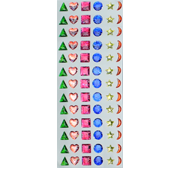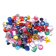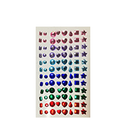 Pack of 78 adhesive rhinestones, assorted color & shape.