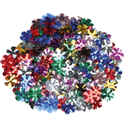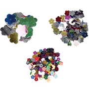 Pack of glittered flower shapes, assorted colors.