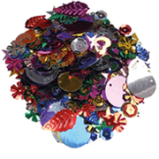 Pack of assorted glittered shapes, various colors.