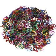Pack of glittered alphabetical shapes, assorted colors.