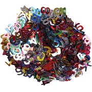 Pack of glittered numerical shapes, assorted colors.
