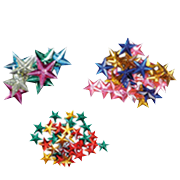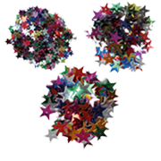 Pack of 3 sizes of glittered star shapes, assorted colors.
