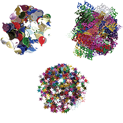 Pack of 3 assorted birthday theme shapes, assorted colors.