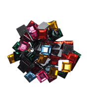 Pack of 960 adhesive square rhinestones, assorted colors 10x10mm.