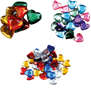 Pack of 54 heart rhinestones, assorted sizes and colors.
