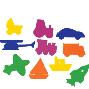 Pack of 100 pieces of assorted locomotion shapes, non-adhesive.